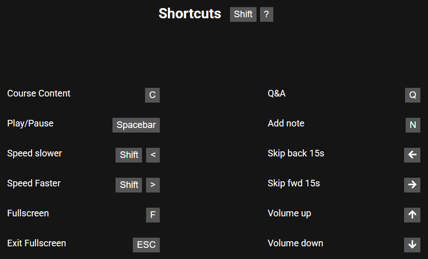 Move faster through tutorials: jump by chapter, save timestamped notes, adjust captions/quality, and use handy shortcuts.